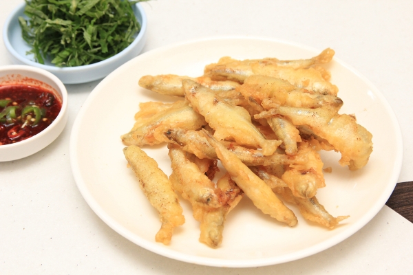【韓国の旬メシ072】ワカサギを天ぷらにした、ピンオティギム(빙어튀김)。12月下旬から2月にかけて全国各地でワカサギ祭りが開催されます。京畿道の楊平、安城、加平、漣川、江原道の麟蹄、原州、仁川の江華島など。