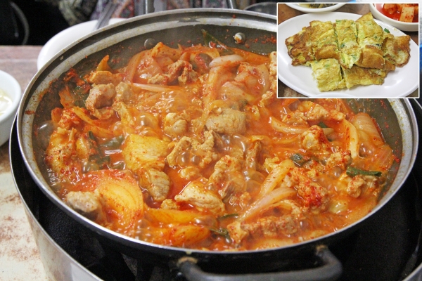 【韓国の旬メシ080】家庭で食べる鍋料理の定番、キムチチゲ(キムチ鍋、김치찌개)。通年で食べますが、寒い季節にはやはり格別ですね。相性がよいとされるケランマリ(卵焼き、계란말이)を添えるとさらによしです。