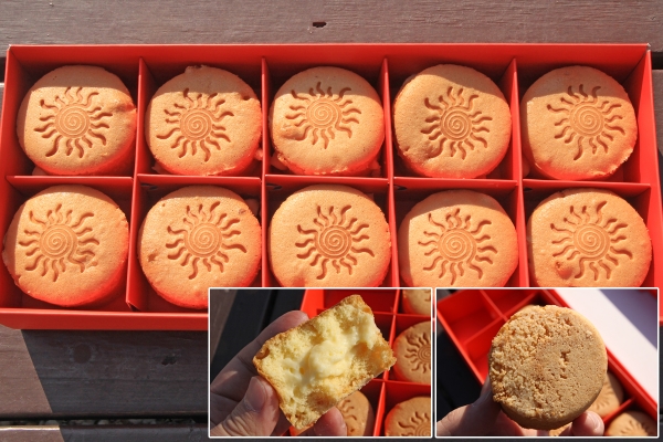 【韓国の旬メシ085】初日の出の名所として知られる蔚山・艮絶串(カンジョルゴッ)の、ヘッパン(해빵)。直訳すると太陽パンです。カステラの中にカスタードクリームが入り、底はクッキー生地でサクサク。