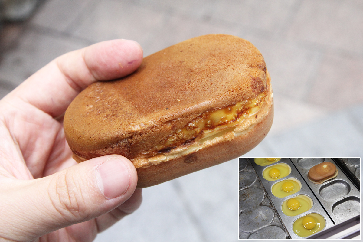 【韓国の旬メシ092】あんこのかわりに卵を入れた今川焼きの、ケランパン(계란빵)。写真は1982年にケランパンを考案したとされる仁川の仁荷大学前にある店で撮りました。寒い季節にこそ食べたい冬の屋台オヤツです。
