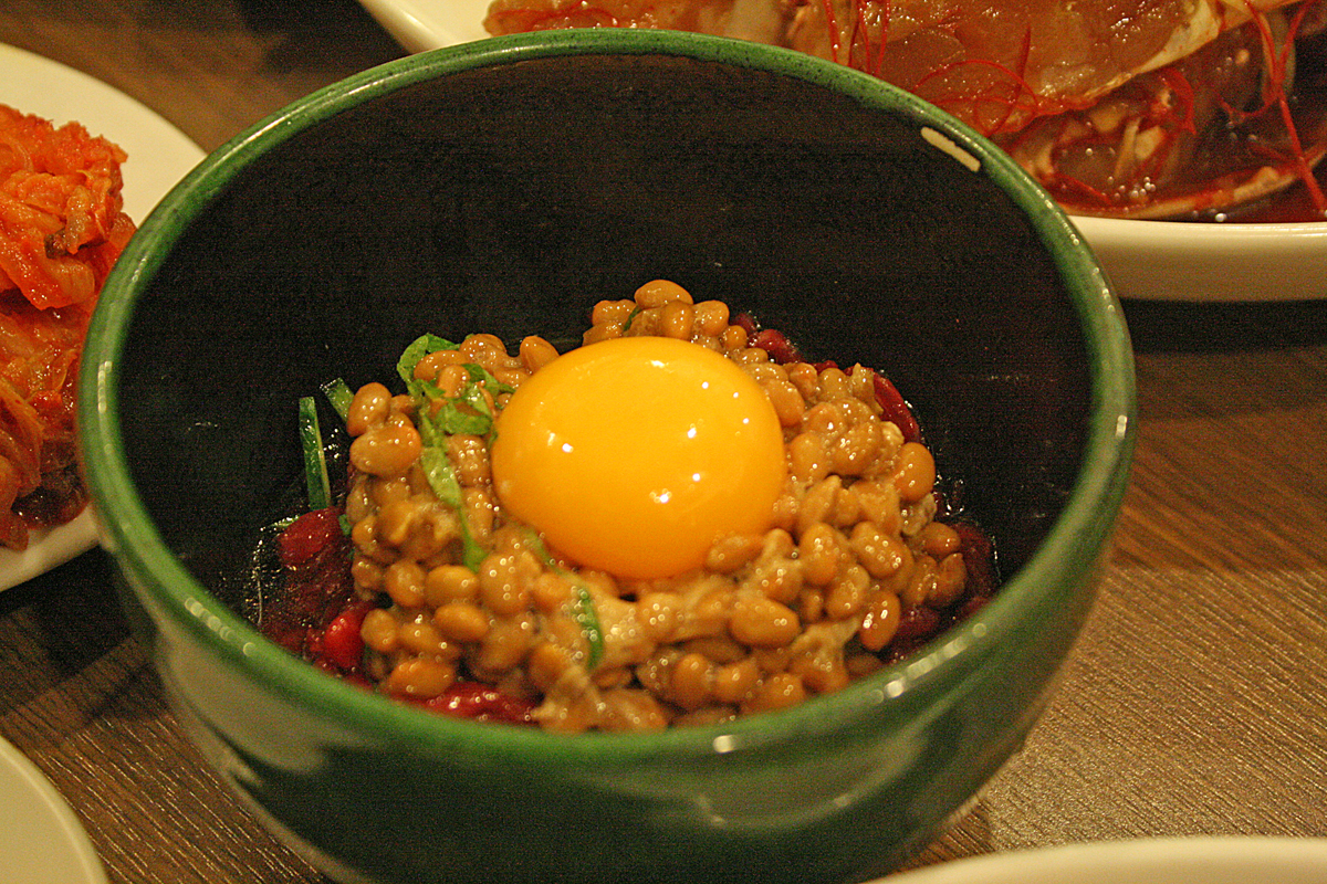 なお、韓国にもチョングッチャンという納豆風の速成味噌がありますが、主にチゲとして使います。ユッケと組み合わせる例はないかと検索してみたら「チョングッチャンユッケ」という単語がヒット。おお! と思ったらチョングッチャンとユッケを別々に提供する店でした。納豆ユッケを出す店はあるようですね。