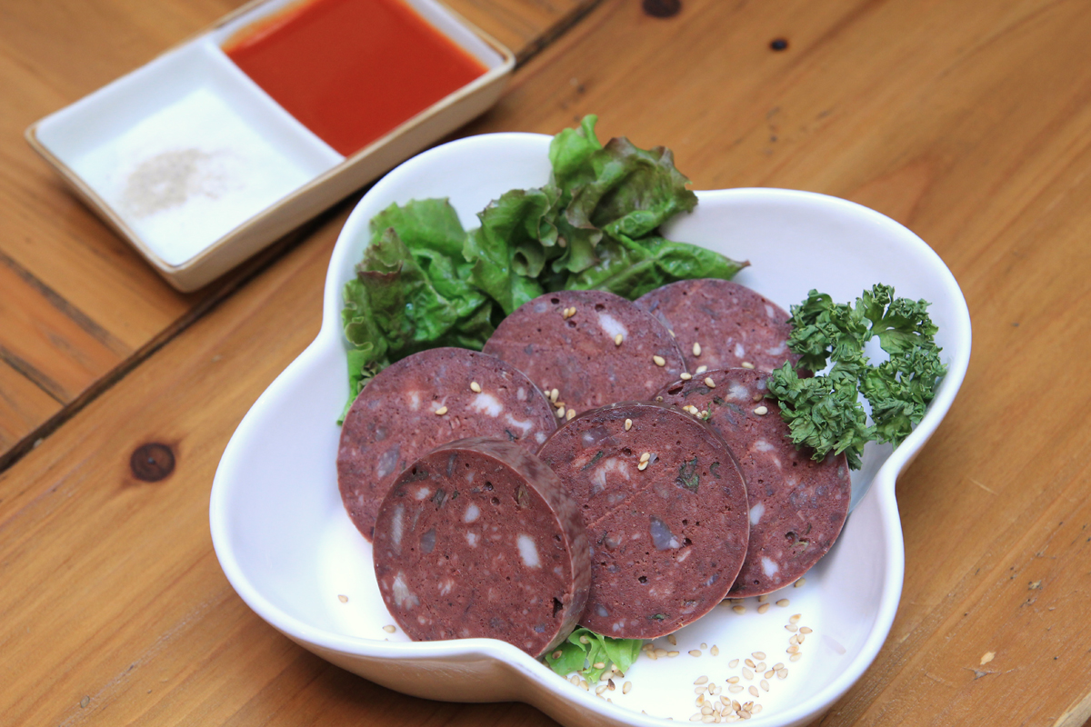 【日本の韓メシ067】済州島式の腸詰め、スエ(수애, 수웨)。標準語ではスンデ(순대)。他地域に比べて野菜の量が少なく、たっぷりの豚の血液とそば粉が入って密度の濃い仕上がりになるのが特徴です。韓国でもなかなか見かけませんが、済州島出身者の多い大阪などで食べられます。