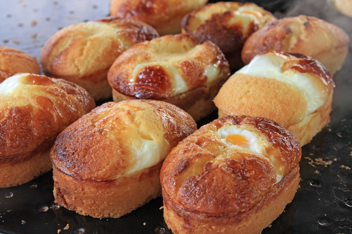 【韓国の旬メシ104】冬の屋台オヤツ、ケランパン(계란빵)。卵入りの今川焼きですが、型に入れてオーブン焼きし、上が膨らんだ形に作ることもあります。昔は今川焼きが主流でしたが、最近はこちらが増えましたね。