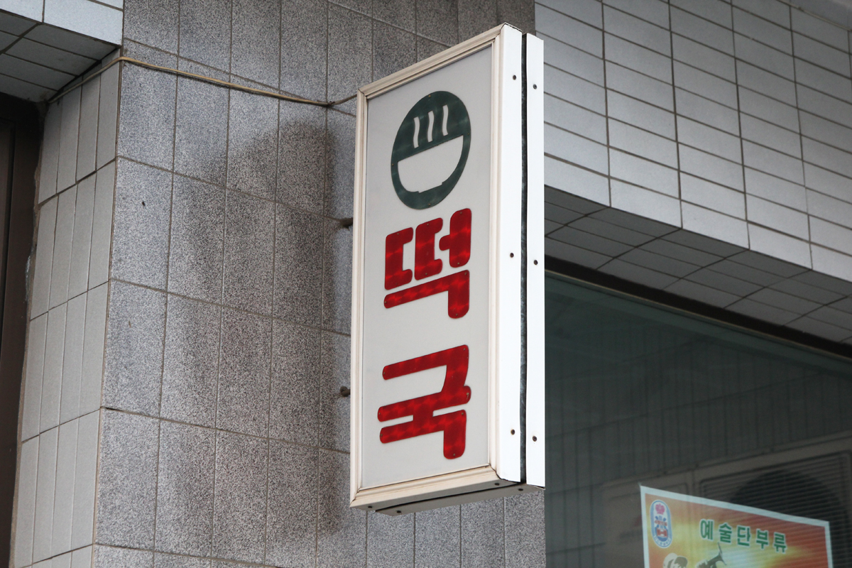 【韓国の旬メシ115】平壌で撮ったトックッ(雑煮、떡국)の看板。北での正月風景を紹介したニュースの情報をいただきまして、豚肉を載せるのが最近の流行だそうです。食べてみたいですねぇ。