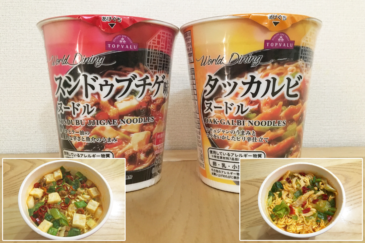 【日本の韓メシ089】トップバリュの「タッカルビヌードル」と「スンドゥブチゲ味ヌードル」。韓国料理も本当に幅広いアレンジが見られるようになりました。どちらもカップ麺として美味しくいただきましたが、よりらしい感じだったのはタッカルビ。ひと口目で「おっ!」となりました。