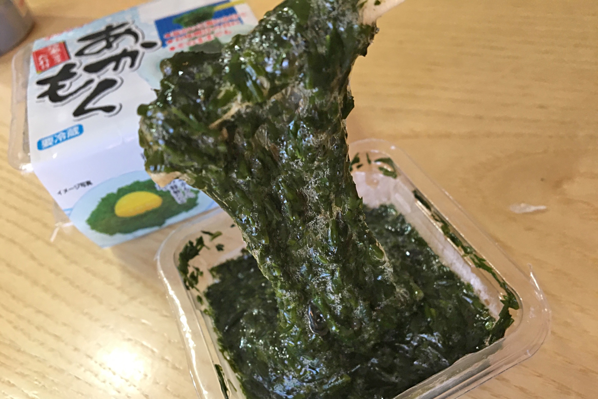 全羅南道の高興から輸入されていると聞き、まだまだ知らない食材は多いなぁと。韓国語では「괭생이모자반」。香りよくクセもなくぬるぬるの粘りがいい感じ。マグロぶつとかも合いそう。