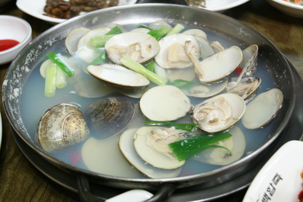 【韓国の旬メシ125】3~5月が旬のハマグリを鍋に仕立てた、ペカプタン(백합탕)。写真は全羅北道の扶安で撮りましたが、西海岸の各地で食べられます。ハマグリはほかにも蒸し焼き、和え物、お粥などが定番です。