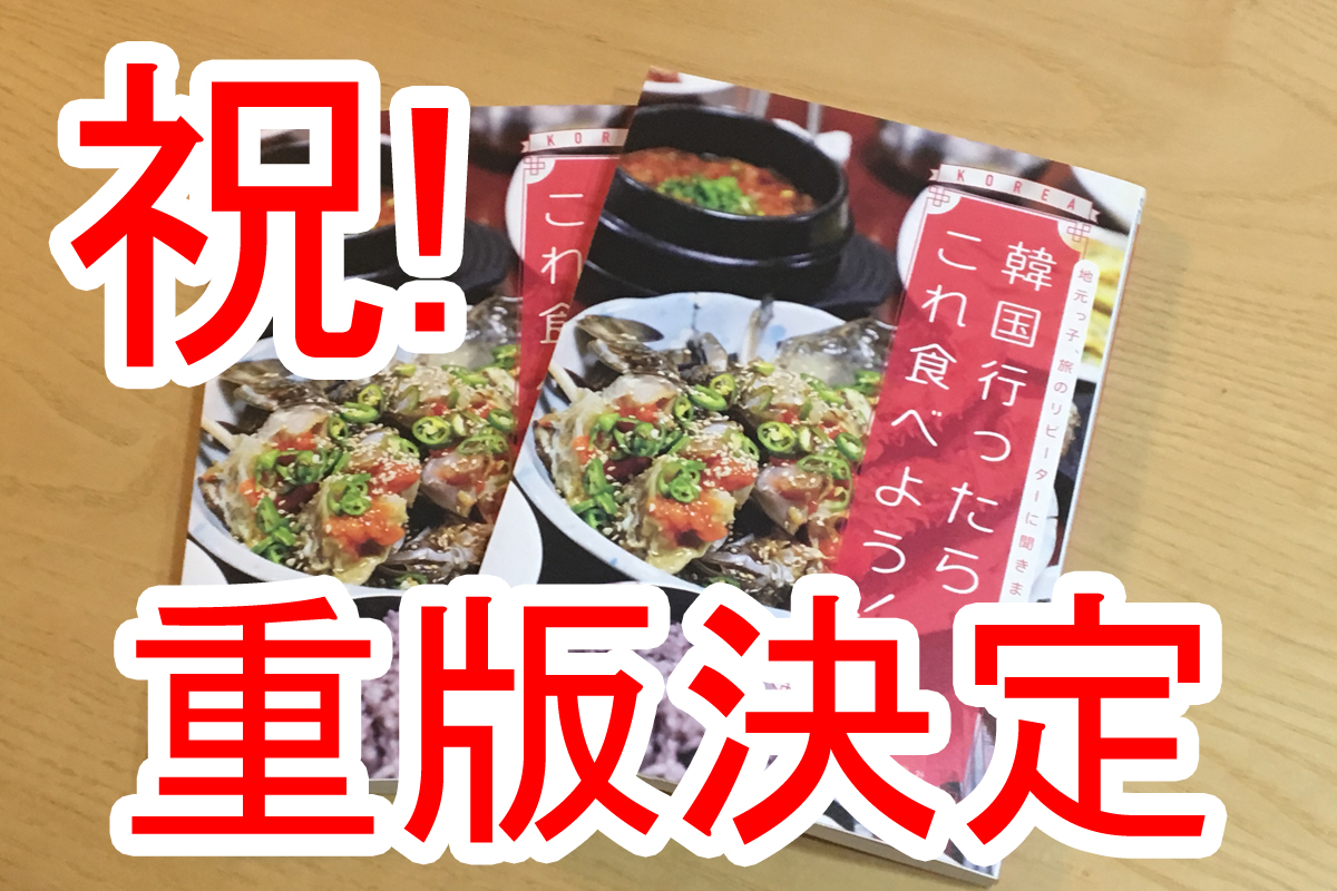 3月7日発売の新刊『韓国行ったらこれ食べよう!』は、発売から1ヶ月経たずして重版が決定しました。たくさんの方からの高いご評価に深く感謝しております。各店舗にも発送しましたので、ぜひこの本を携えて食べ歩いてみてください。
