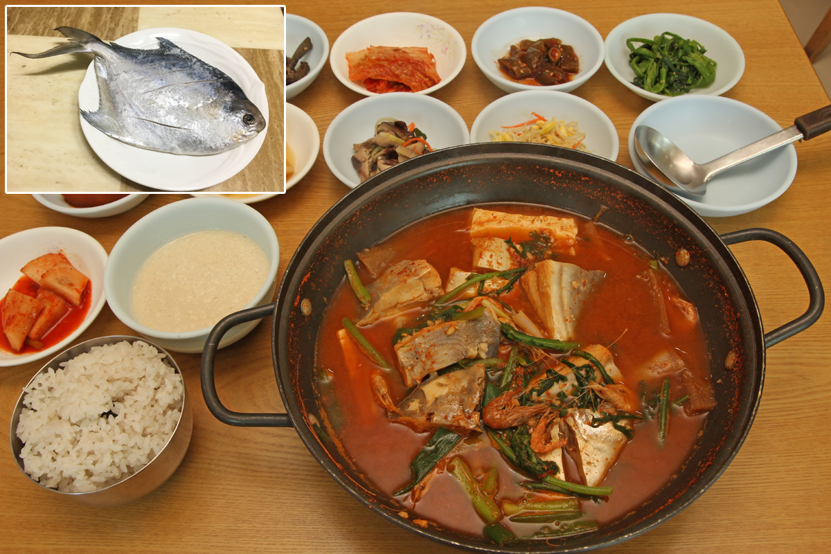 【韓国の旬メシ145】5~6月に旬を迎えるマナガツオ。韓国語ではピョンオ(병어)と言います。刺身、焼き魚でも食べますが、チゲにしても美味しいです。写真は名産地である仁川・江華島の老舗「ウリオク」で食べたもの。