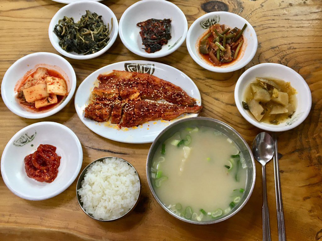 秋のまんぷくツアー下見。今年は江原道へ参ります。まずは麟蹄(インジェ)にて名物のファンテ(干しダラ)定食から。スープは牛骨を使わず、スケトウダラだけを煮込みエゴマ油でコクを出すとのこと。焼き魚も脂がにじみ出て美味しかったですねぇ。