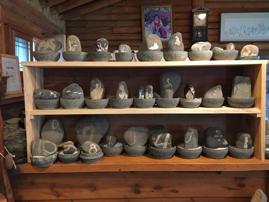 コンドゥレバプの店のお母さんは石拾いの名人で、韓国、日本の地図、着物を着た日本女性の図が浮かぶ天然石を見せてくれました。数字が揃っているのもスゴイ。