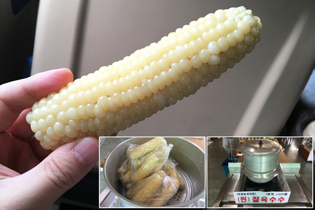 【韓国の旬メシ173】夏に旬を迎えるトウモロコシ。韓国ではモチ種のトウモロコシ(찰옥수수)も人気です。写真は江原道麟蹄郡で撮ったもの。甘味は控えめですが、モチモチモクモクとした食感の面白さが後をひきます。