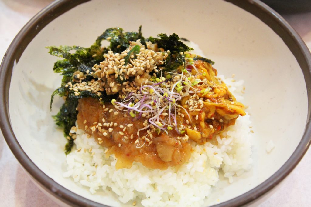 【韓国の旬メシ178】生のホヤとオオアサリの炒め物をビビンバにした、モンゲユグァクピビムパプ(멍게유곽비빔밥)。慶尚南道統営市の牡蠣料理店で、牡蠣のシーズンではない春夏の限定メニューとして出ていました。