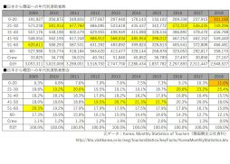 韓国観光公社のデータから世代別、月別、入国場所別、男女別の渡航者数を調べました。 まずは世代別から。 20代(21-30歳)が最多で全体の25.4%。前年比の伸び率では20歳以下(0-20歳)が1.43倍で最高(全