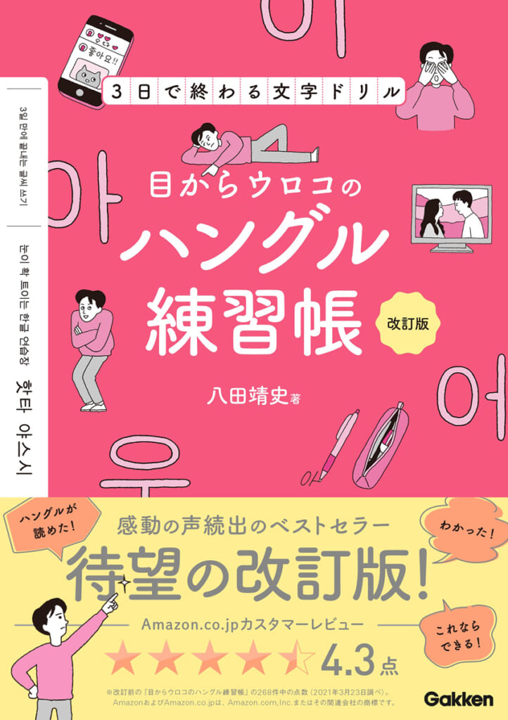 とにかく文字だけ覚えるハングル本。2021年4月に改訂版を発売。