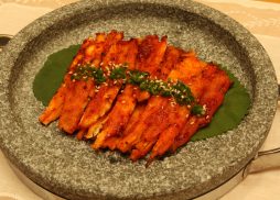 【韓国の旬メシ109】ツルニンジンに薬味ダレを塗って焼いた、トドックイ(더덕구이)。高麗人参のようなほろ苦さがあり、よく叩いて下ごしらえをするとジャキジャキとした食感が軽快です。寒い時期の2月頃が旬です。 【日本の韓メシ