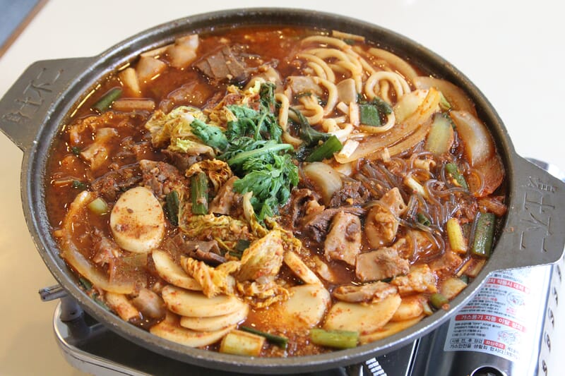 コプチャンジョンゴル。ソウル市江南区新沙洞「トゥレグクス(두레국수)」にて2018年9月19日撮影。