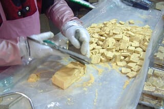 ホバクヨッをハサミで切っているところ。ソウル市西大門区老姑山洞にて2002年4月撮影。