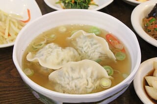 マンドゥクッ。ソウル市鍾路区寛勲洞「寺洞麺屋(사동면옥)」にて2014年2月9日撮影。
