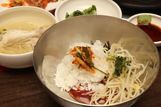 ポックッの具とごはんを器で混ぜているところ。慶尚南道泗川市閥里洞「テボクポッチプ(대복복집)」にて2017年1月17日撮影。