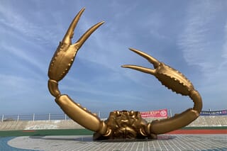 盈徳ヘパラン公園(영덕해파란공원)にある巨大なズワイガニのオブジェ。2023年3月22日撮影。