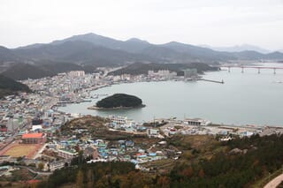 莞島タワーから見た莞島湾。2015年11月12日撮影。