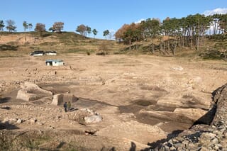 遺蹟の調査が行われている城山山城。2023年1月28日撮影。