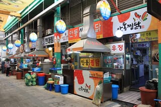 安東旧市場内の安東チムタク通り(안동찜닭골목)。2014年5月5日撮影。