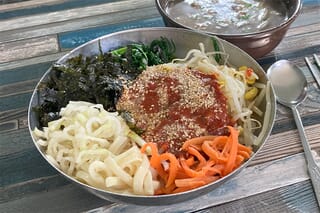 ピビムカルグクス。釜山市江西区大渚2洞「市場粉食(시장분식)」にて2024年11月28日撮影。