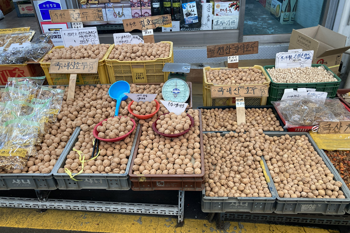 現在の版2025年12月2日 (火) 13:462025年12月2日 (火) 13:46時点における版のサムネイル1,200 × 800 (1,019キロバイト)Hatta (トーク | 投稿記録)天安中央市場に並ぶクルミ。2025年11月5日撮影。
