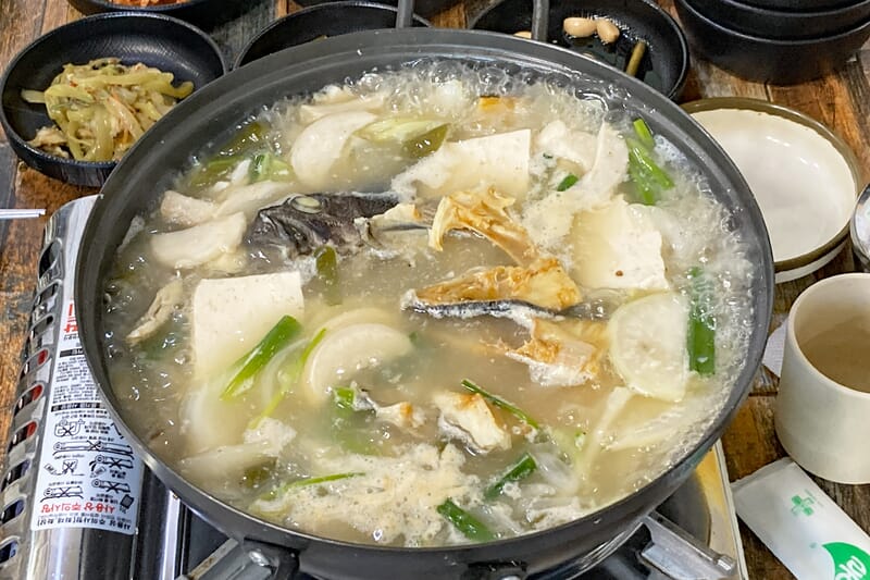 ウロクチョックッ。忠清南道泰安郡安眠邑倉基里「陸橋食堂(육교식당)」にて2025年5月17日撮影。