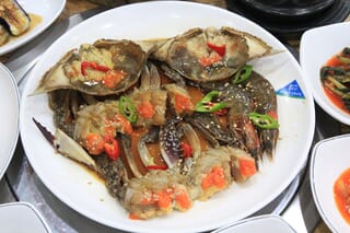 カンジャンケジャン。忠清南道瑞山市東門洞「チョンウォンコッケジャン(청원꽃게장)」にて2016年7月4日撮影。