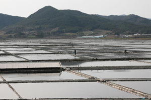 - 「開岩竹塩は清浄海域である国立公園辺山半島のコムソ塩田で生産されたミネラル豊富な天日塩を3年以上育った竹筒の中に入れ、黄土だんごで栓をした後、松の木の薪だけを燃料として使い、高温で焼き上げることを8度繰り返し、最後の9回目は薪に松脂をばらまいて加熱温度をよりいっそう高めることで塩が溶けて流れる、といった丁寧な過程を経、ていわゆる『紫色の宝物のような塩』が誕生することになる」(原文1)[4]