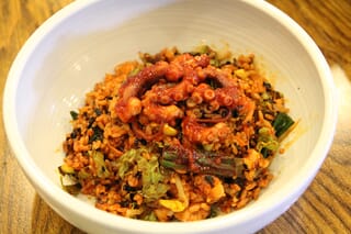 ごはんと混ぜたナクチボックム。ソウル市鍾路区楽園洞「鍾路真ナクチ(종로진낙지)」にて2014年12月2日撮影。