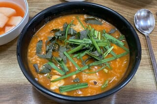 パガオジュク。全羅北道茂朱郡茂朱邑邑内里「錦江食堂(금강식당)」にて2025年4月2日撮影。